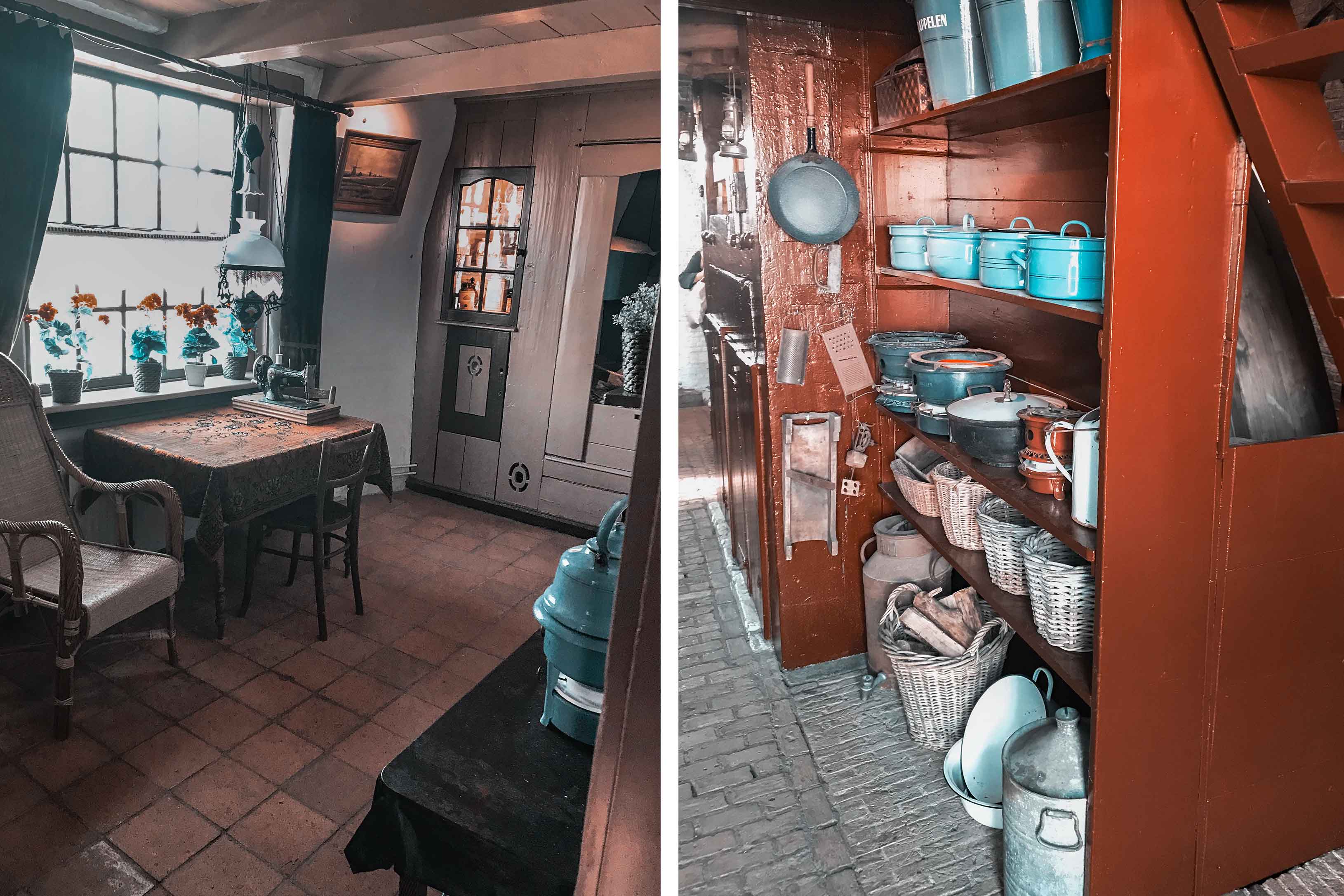 There are many options of spending a day to the Kinderdijk windmills: boat rides, bicycle tours or simply walking into the nature, alongside the canals and enjoying the beauty and uniqueness of the place. The entrance is 8 EUR (7 EUR if is bought online) and includes: access to the park, a film about the history of the windmills and how the technology evolved in order to make the place that is today, visiting 2 windmills museum and the audio guide, if you download their application. We had the chance to visiting the interior of a windmill and to find out what is like to live in a windmill. The windmill museum Nederwaard, also called Boezemmoled, was built in 1738 and belonged to the Hoek family for generations. A hundred years ago the Hoeks lived there together with their 13 children. It was a great discovery about their way of living into the windmill, what kind of clothes they wore and what did the children’s play with, what type of furniture they had and even listening to a working windmill.